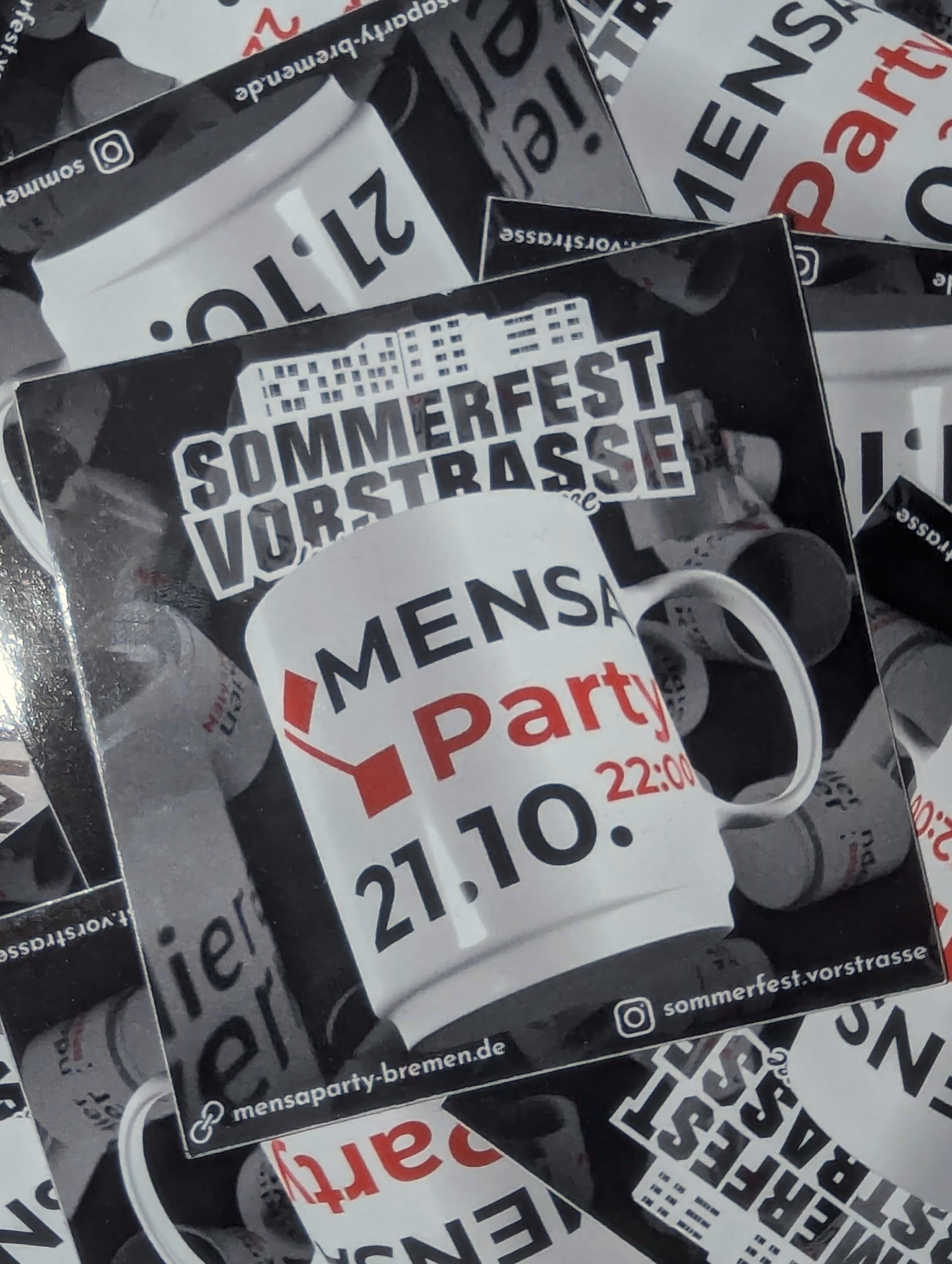 This design was made for the Mensa Party at University Bremen, that should have taken place on 21.10.2023.The party was organized by the Wohnpark am Fleet e.V., who also organize the “Sommerfest Vorstraße feat. Spittaler Straße”. Sadly the ‘Mensa Party’ had to be canceled last minute, due to technical problems in the cafeteria. One way in which I am involved in the work of the association is by contributing to the designs and media presence of the organization. Even though this was not used in as the main advertisement, stickers of this design were used and a social media post was planned.